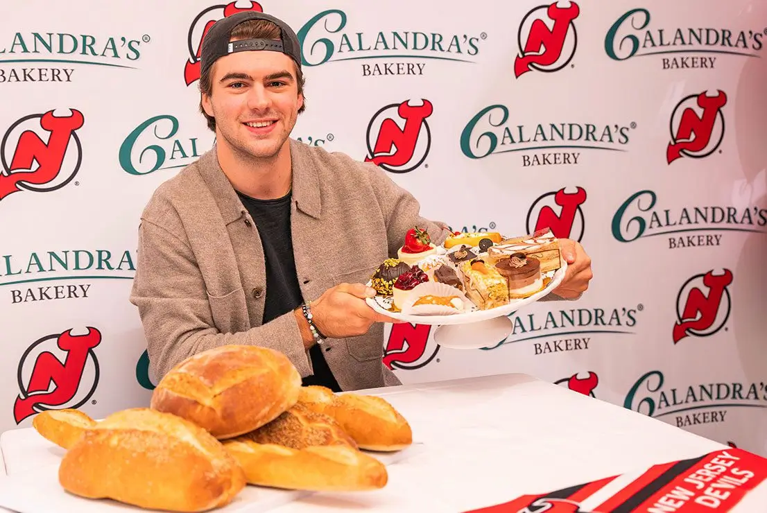 New Jersey Devils captain Nico Hischier and Calandra’s Bakery recently announced a partnership for the 2023-24 season. As part of the agreement, Nico will make two special appearances at Calandra’s restaurants throughout the season providing Calandra’s customers and Devils fans the unique opportunity to meet and interact with the team’s captain. The first appearance took place October 10 at Il Vecchio Café in Caldwell, NJ with a second appearance a TBD event in February/March.