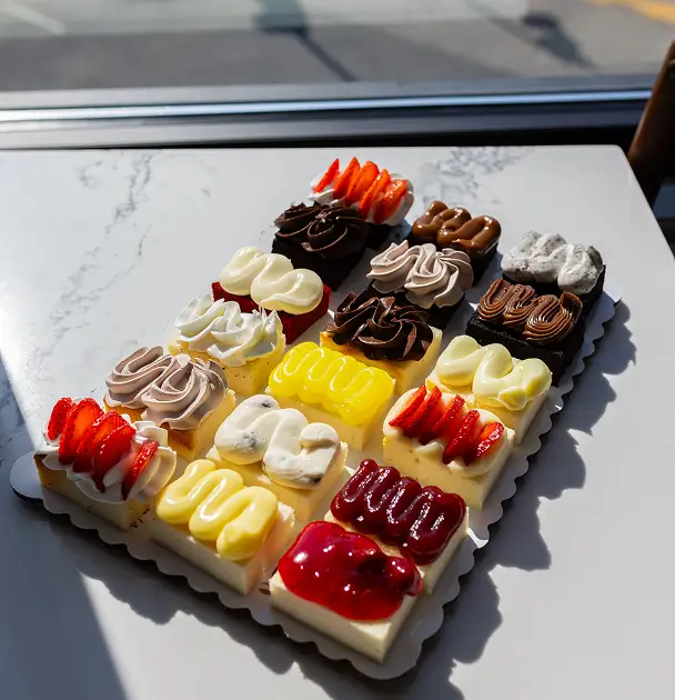 During your complimentary tasting, we will discuss what you’re looking for in your custom wedding cake. We will meet with you one on one, and ask you questions while you sample all our different yet delicious flavors and fillings.